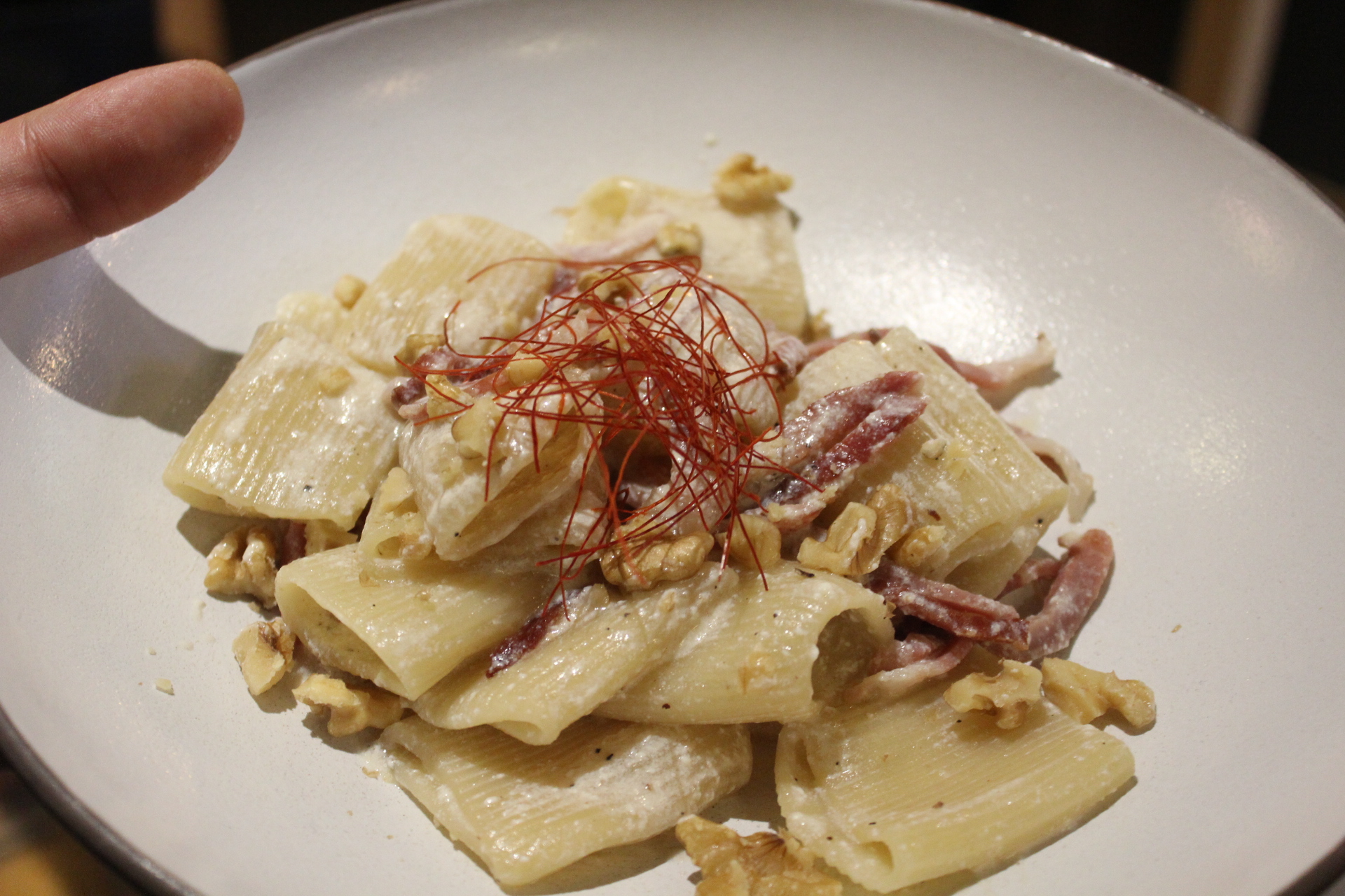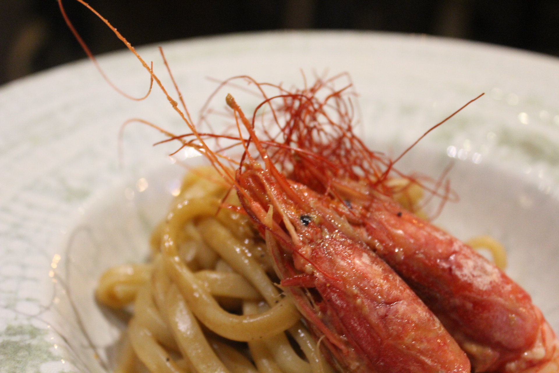 Scialatelli pesto di basilico burrata e tartare di gambero rosso
